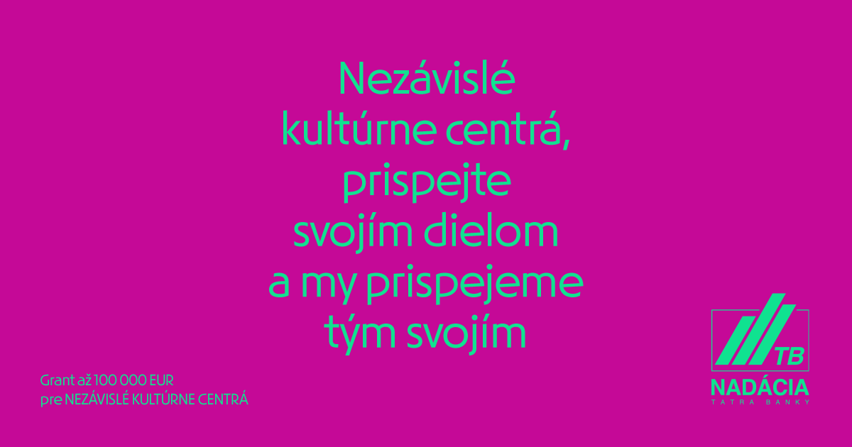 Aj Nadácia Tatra banky prispeje svojím dielom. Cez svoj mimoriadny grantový program podporí nezávislé kultúrne centrá sumou 100 000 EUR.